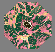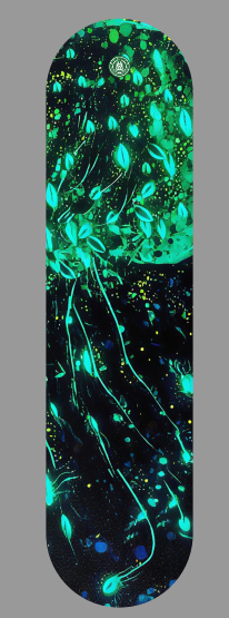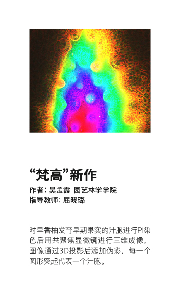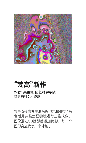 此次展览的灵感源自华中农业大学显微成像学术实践大赛中的参赛作品,那些在实验室中诞生的图像,既是科研论文中搭建理论研究进步的台阶,也作为原始创作的素材,经由人工智能生成内容(AIGC)技术,最终蜕变为多元交融的艺术形态。我们试图构建一个开放融合的展陈空间,打破实验室与艺术馆的界限,将生命科学与文创艺术结合,营造一种可参与、可体验的沉浸场域。